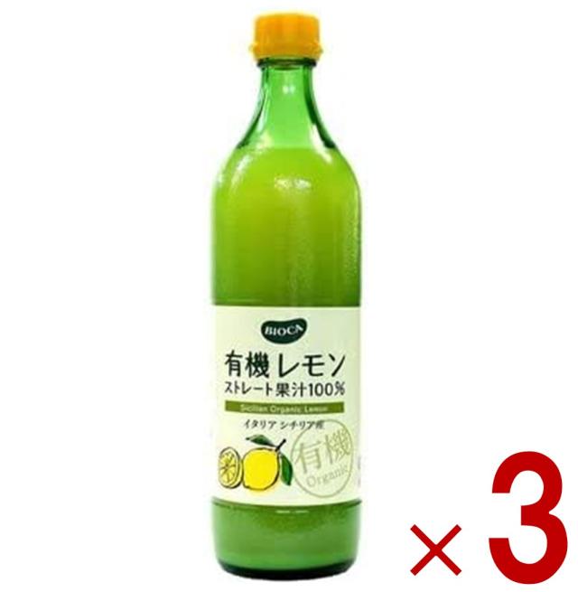 ビオカ 有機レモン 有機 レモン ストレート 果汁100% オーガニック 700ml 3本