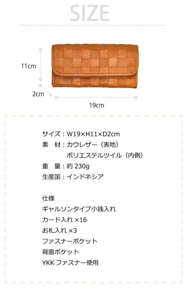 ![]() ![]() ![]() ![]() ![]() ![]() ![]() ![]() ![]() zucchero ズッケロ ナチュラルな風合いを大切にした大容量収納の長財布。素朴な匂いや革本来の色の濃淡が、使い込む程に味わい深く変化し、持つ人に馴染みます。 ひと目で本革とわかるナチュラルな風合いや、くったり柔らかく表情豊かになる本牛革ならではの経年変化をお楽しみ下さい。 飽きのこないベーシックなデザインで年齢問わず使いやすい仕様に。 収納スペースやカードポケットが豊富で大容量収納出来ます。 見た目の可愛さだけではなく、機能性にもこだわり仕上げました。 自分へのご褒美としてはもちろん、贈り物としても喜ばれる長財布です。