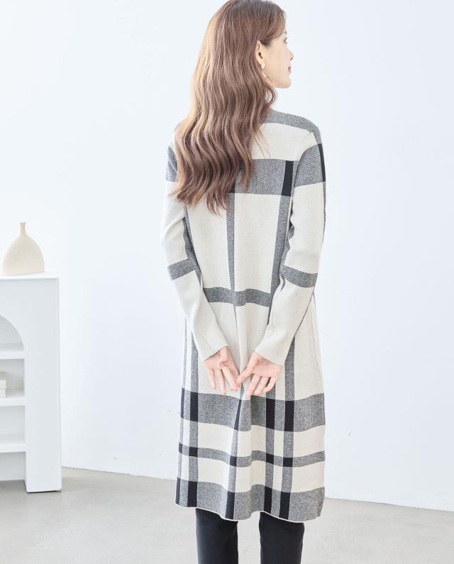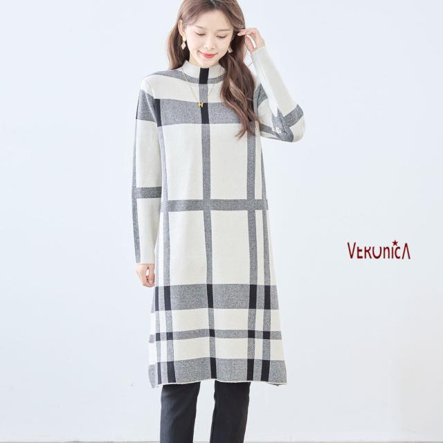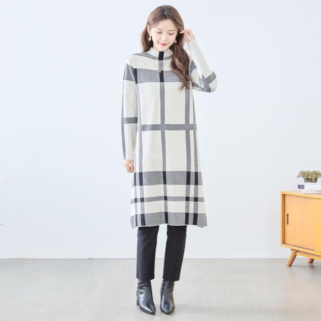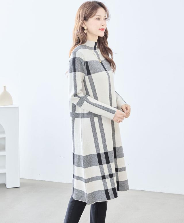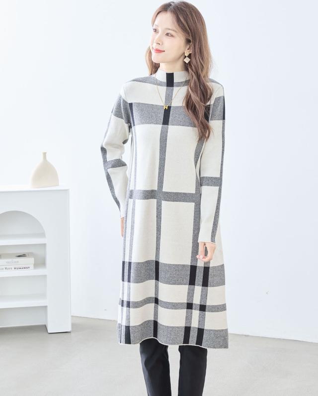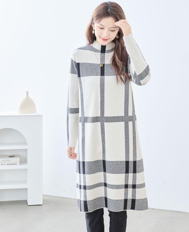 【即納】チェック柄ニットワンピース 膝下丈 体型カバー 美ライン AW 秋冬 新作