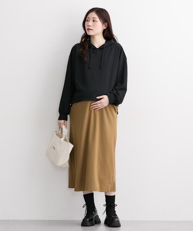 1枚着るだけで、トレンドのコーデが完成 パーカーとスカートを合わせたドッキングワンピースです ■design ・カジュアルコーデにぴったりの、パーカーとスカートのドッキングデザイン ・ゆるっとしたシルエットで、お腹が大きくても目立ちにくい ・トップスの両サイドとスカート後ろにスリットがあり、動きやすくこなれ感もUP ■point ・内側がノースリーブのワンピースになっているので、トップスの裾をめくるだけでサッと授乳ができます 身幅がたっぷりとしているので、授乳時はベビーちゃんを中に入れ、ケープのように目かくしして授乳ができます ・授乳口がないので、卒乳後も長く着られます ・両脇にポケットがあり、スマホやハンカチなどを入れられます ・袖口はリブになっているので、家事や水仕事の際に袖が落ちてくることもなく便利です ■fabric ・スウェット素材でシワになりにくく、ラクな着心地 ・春秋向け ■maternity ・産前から産後に使う ・授乳機能付