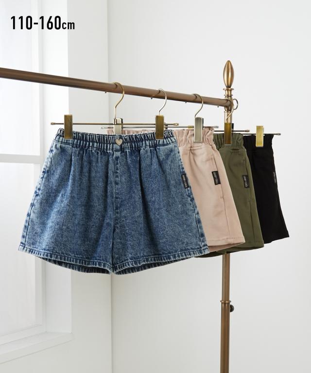 ウエストボタンのハートがかわいいキュロットです ■デザイン ・主張しすぎないハートボタン ・幅広ウエストゴムで履き心地ラクチン ・両サイドに便利なポケット付き ■素材 ・ネイビーは綿素材のデニム ・ネイビー以外はストレッチ素材で動きやすい ■おすすめのスタイリング ・シンプルなデザインなのでどんなアイテムにも合わせやすい ・通学に最適な動きやすさ