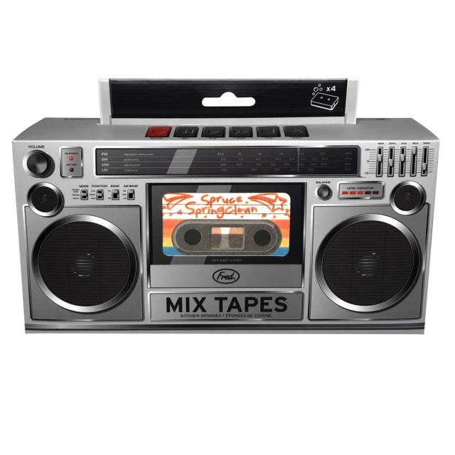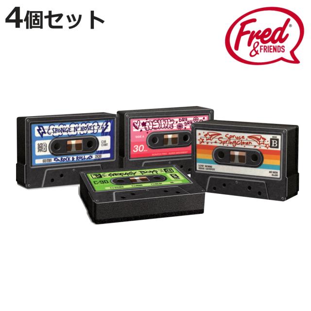 キッチンスポンジ Fred ミックステープスポンジ 4個セット ( 台所用スポンジ 食器用スポンジ 食器洗いスポンジ おしゃれ かわいい クリーナー スポンジ 食器用クリーナー 食器用 食器洗い 皿洗い 両面 カセットテープ 柄 )