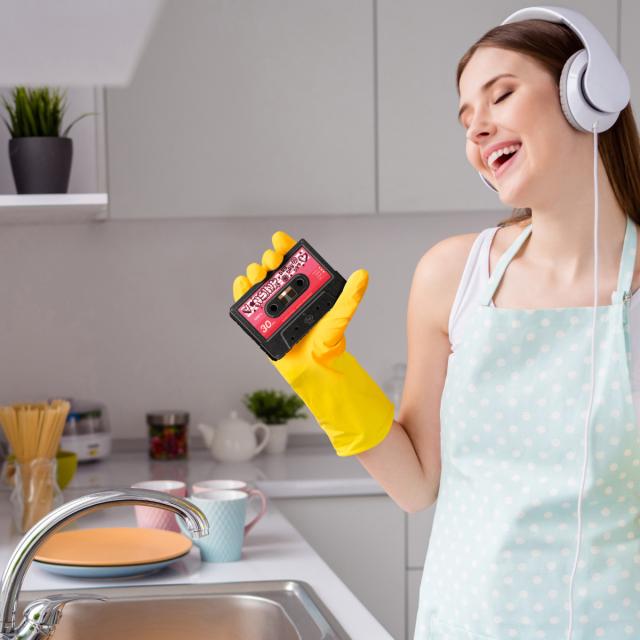 ラジカセのような箱の中にミュージックテープみたいな可愛いらしいスポンジが4つ入ったセット商品です。洗うものによって両面使い分けができるスポンジはピンク、グリーン、ブルー、ホワイトの4色セット。見ているだけで楽しいスポンジセットは、ちょっとしたギフトにもおすすめです。