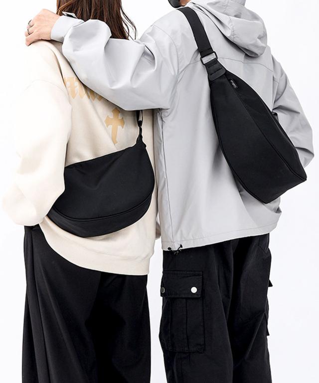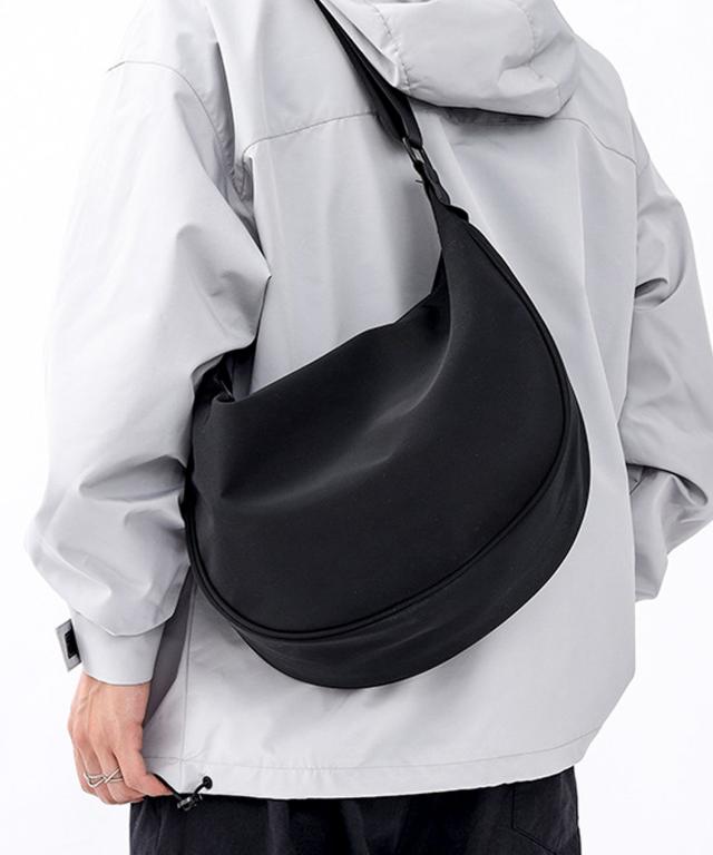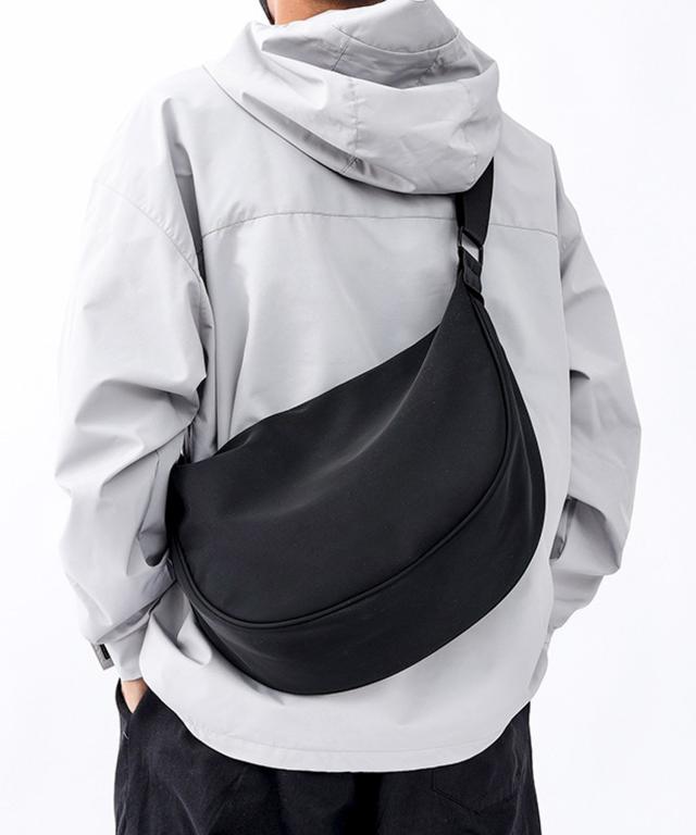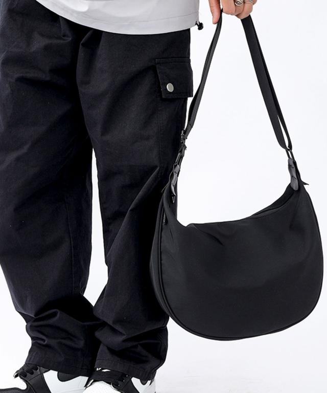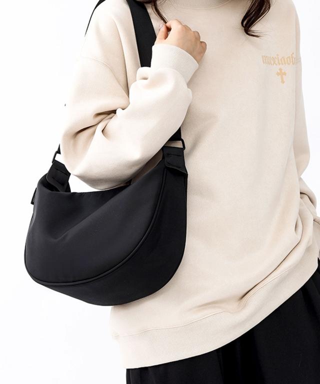 【2WAY/斜めがけ/軽量/丈夫な撥水ナイロンを使用/2WAY カジュアルナイロンハーフムーンバッグ/ショルダーバッグ】