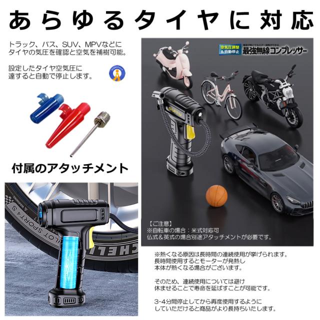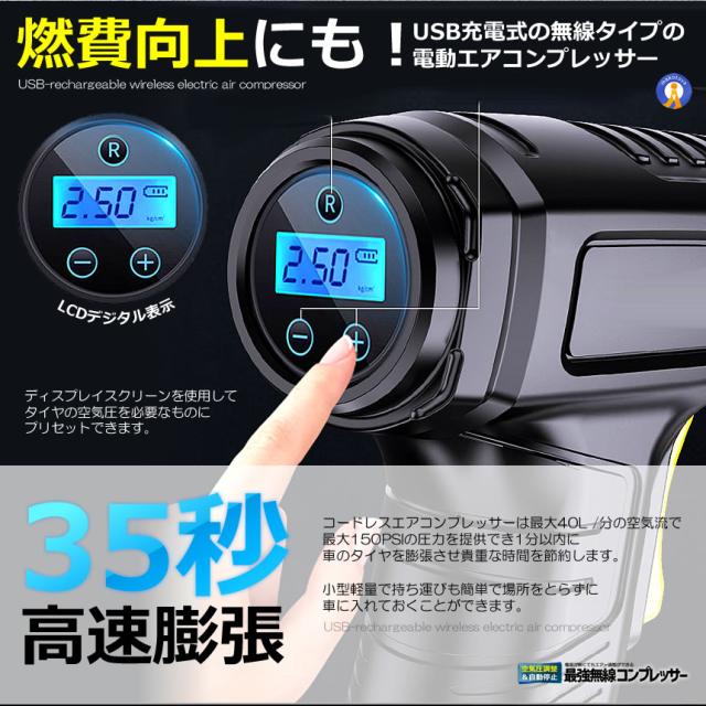 5個セット エアコンプレッサー 電動 USB 充電式 改良版 エアーポンプ コードレス 自転車 空気入れ 自動車 バイク YOYOAIRIRE