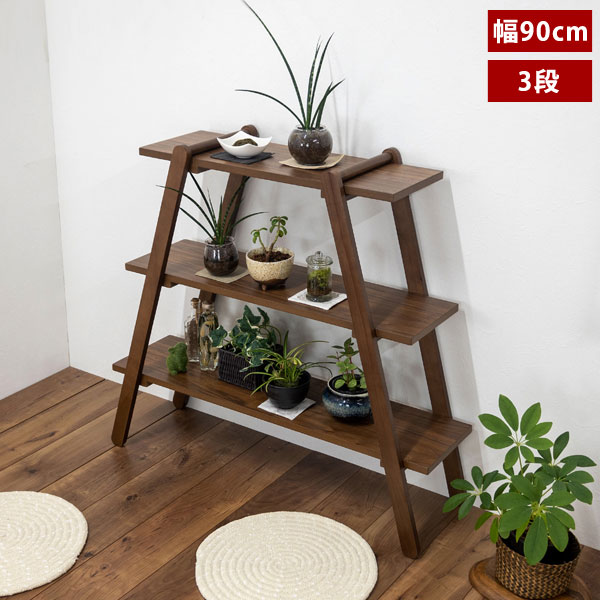 オープンラック 3段 木目調 幅90cm ブラウン CH-2408