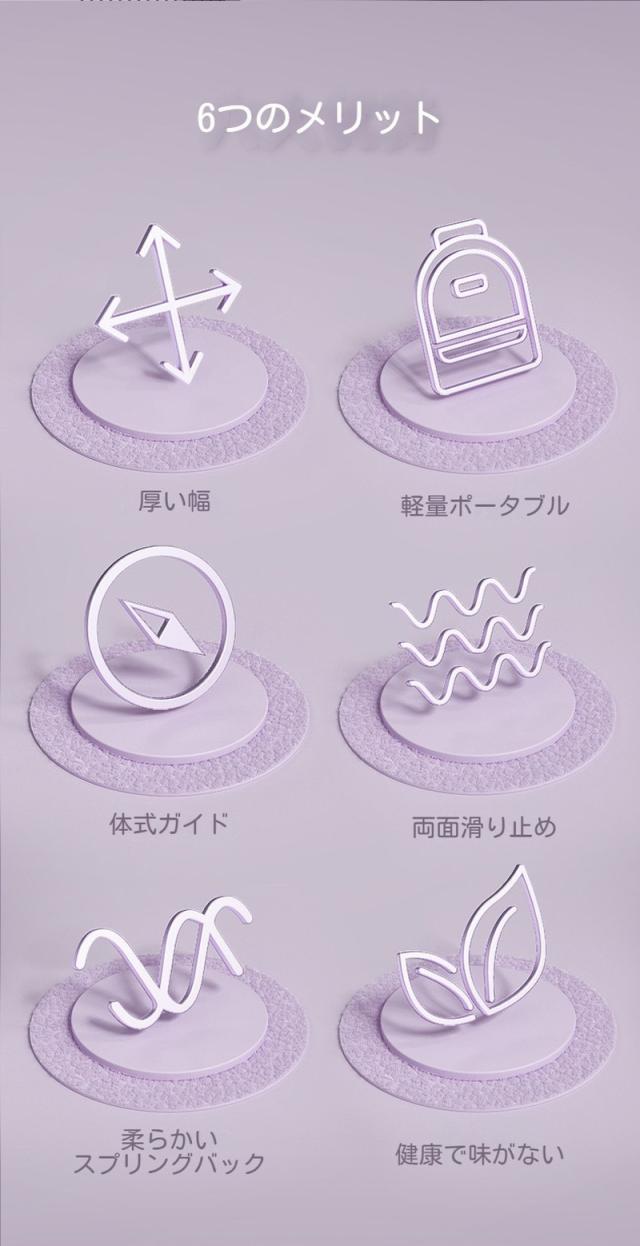 特殊な横じまエンボス加工で滑りにくいため、安心して様々な エクササイズ や、複雑な動きのあるヨガポーズにも取り組めます。
