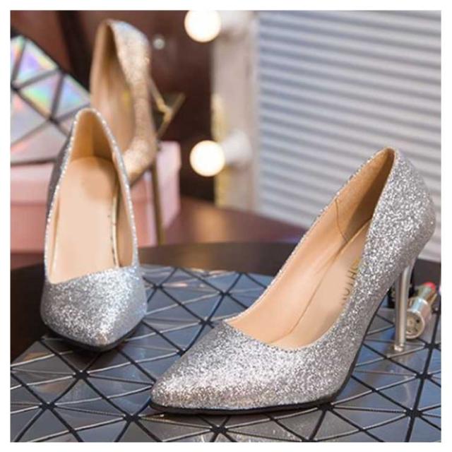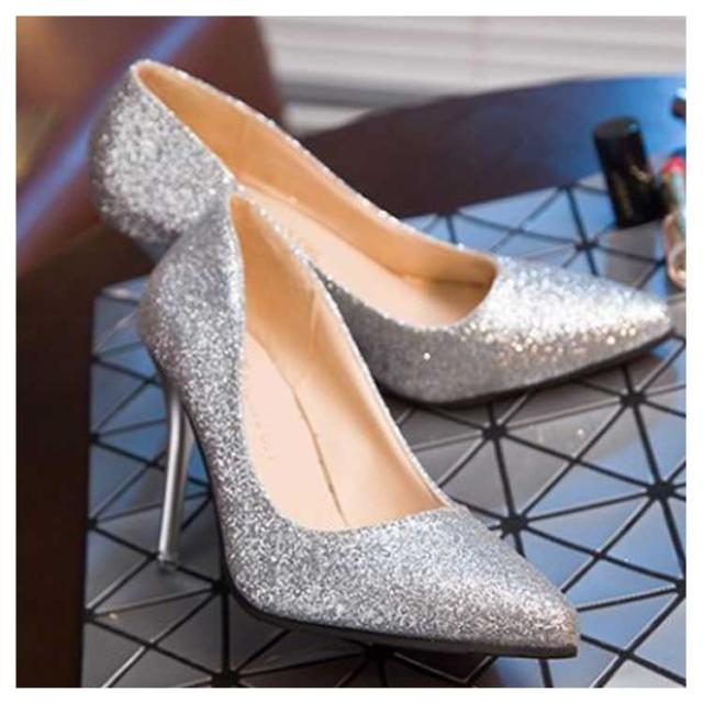 全4色 キラキラ パンプス 結婚式 ハイヒール 6cm 9cm ピンヒール 美脚パンプス 痛くない 華やか フォーマル パーティー 披露宴 謝恩会 お呼ばれ ゴールド シルバー ピンク ブラック 22.0-25.0cm