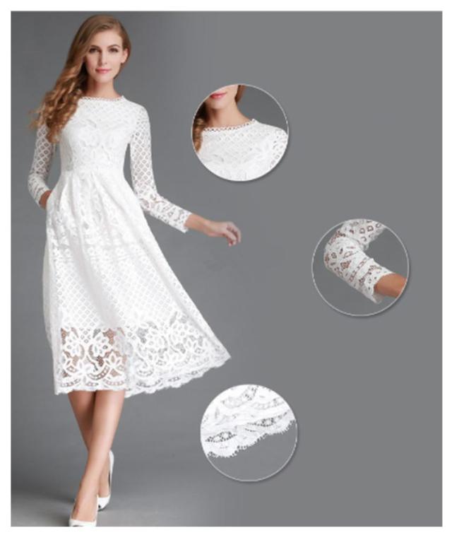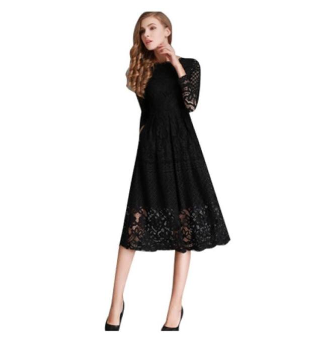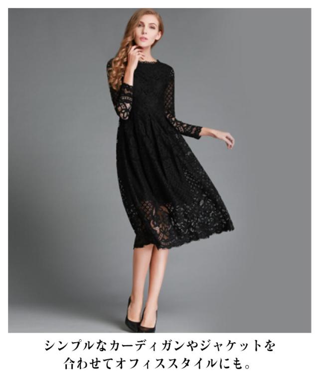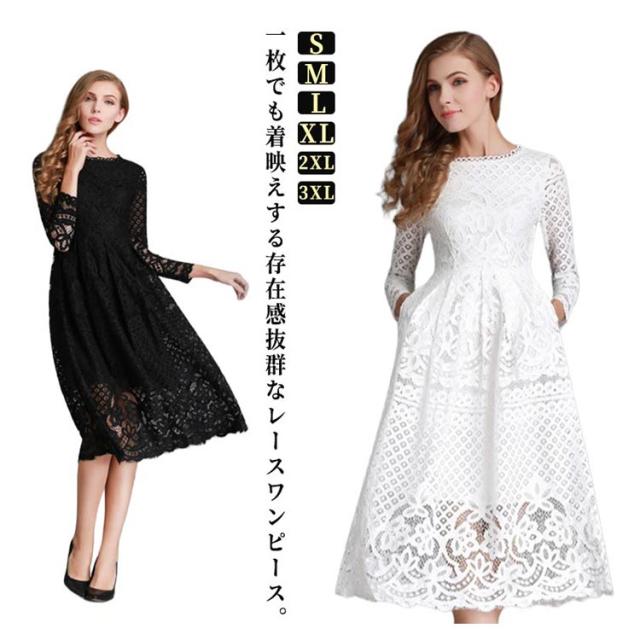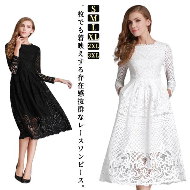 パーティードレス ミモレ丈 レースワンピース 長袖 結婚式 ワンピース 膝丈 大きいサイズ 入園式 二次会 謝恩会 同窓会 発表会 20代 30代 40代 50代 春 夏 秋 冬 白 黒