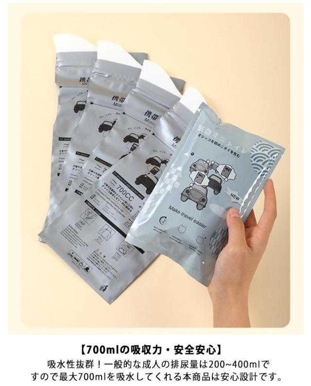 10回分 携帯トイレ 緊急 ミニトイレ 携帯 ミニ 使い捨て 密閉型 凝固剤 車 コンパクト 小便用 トイレ 700ml 女性用 男性用 男女兼用 キッズ 子供 簡易トイレ ポータブルトイレ 持ち運び 非常用 災害 避難 車内 渋滞 小便 送料無料