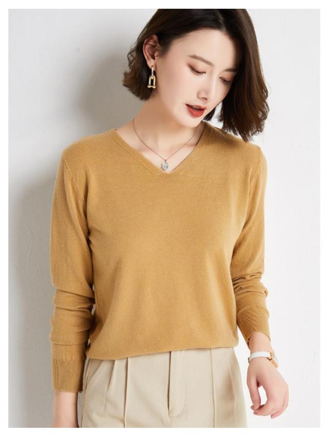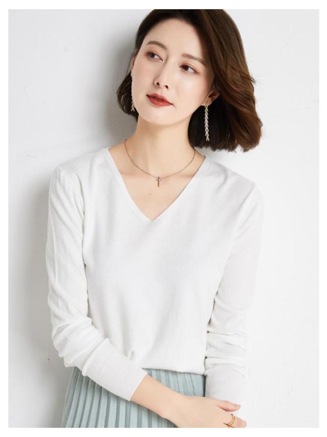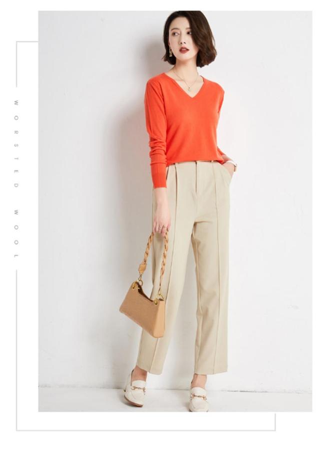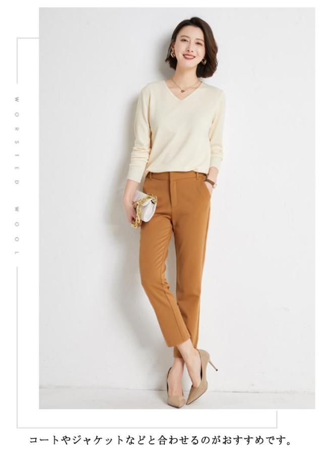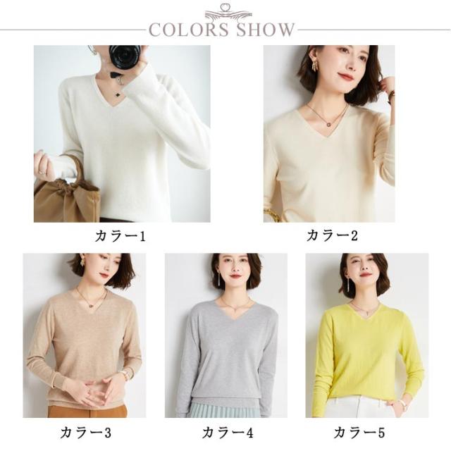 | シンプルでスタイリッシュなvネックセーター 七分袖デザイン 秋冬にぴったりな柔らかな肌触り 暖かくなったら一枚で着用することもできます コートやジャケットなどと合わせるのがおすすめです。 | |