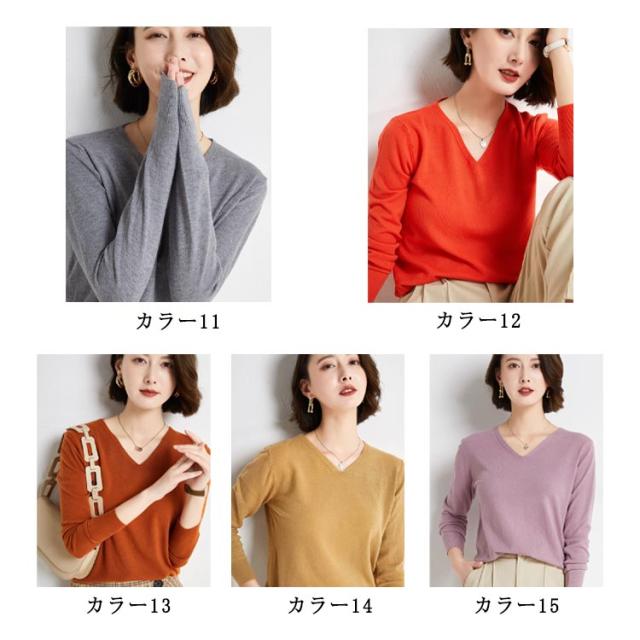 ニット レディース トップス セーター vネック ニットウェア セーター 長袖 長そで 秋 長袖ニットセーター ニット S M L XL 2L 無地 お出かけ 着痩せ エレガント カジュアル お洒落 柔らか 着回し 淑女 通勤通学 送料無料