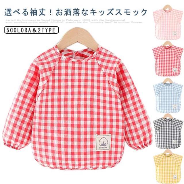 | 選べる袖丈!お洒落なキッズスモック すっぽり被るだけで可愛く汚れ防止◎ お砂場遊び、おゆうぎ、お料理のお手伝い、お絵かきなどいろんなシーンに重宝します。 綿混生地なので丈夫で長持ち、どんどん洗濯。通気性にも優れる。 薄目のチェック生地ですが、軽くて丈夫です。 お洋服のような可愛いデザイン、子供が大好きに間違いなし。 お家はもちろん、幼稚園や保育園でも大活躍に間違いなしです。 | |