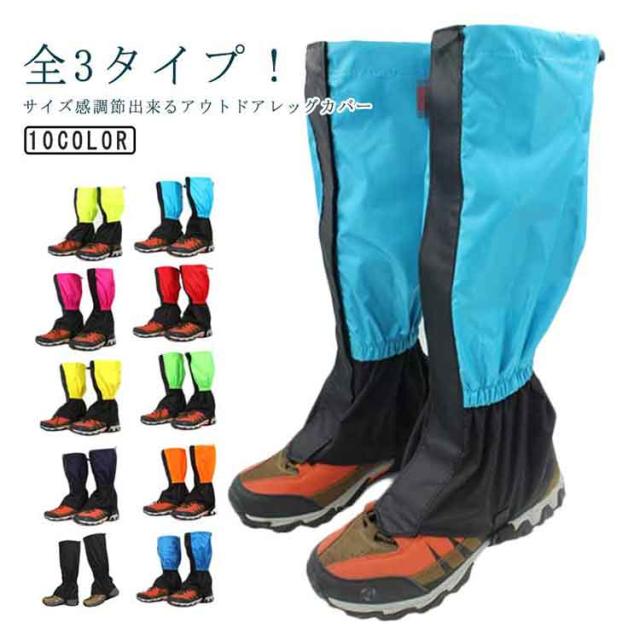 | 全3タイプ!サイズ感調節出来るアウトドアレッグカバー 透湿・防水に優れたポリエステル素材を使用して春夏のハイキング・トレッキングから本格的な雪山まで全般的に対応できるゲイターです。 ズボン裾の汚れや靴の中への砂の侵入を防ぎます。 フリーサイズで、男女兼用です。 冷気防止や虫刺され防止! 足首から膝下まで包み込むようにしっかりとガード! 通勤通学、お買い物など膝下の保護対策に! 軽くて足の負担もかからず、長時間の移動にも適しています! | |