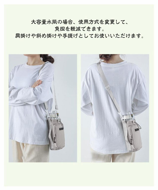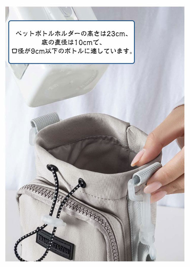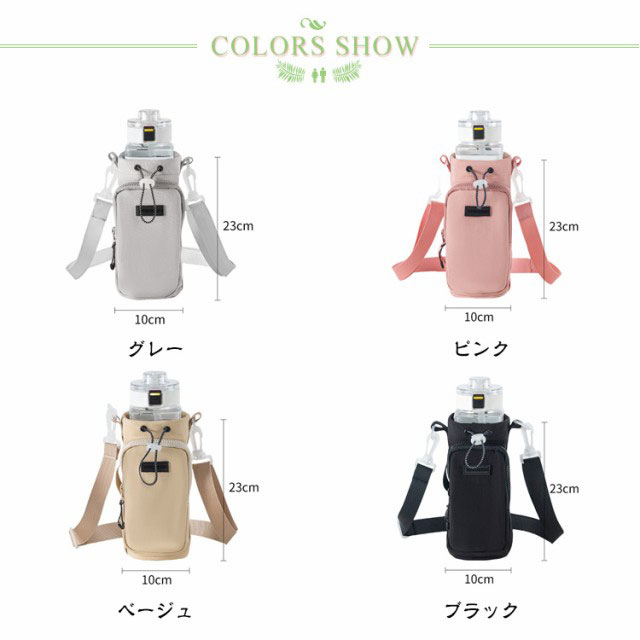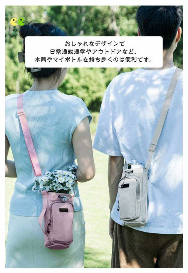 | 【水筒カバー】【大容量対応】【外ポケット付き】【撥水加工】 ペットボトルホルダーの高さは23cm、底の直径は10cmで、口径が9cm以下のボトルに適しています。 また、調整可能な引き紐が付いているので、ボトルが揺れずにしっかり固定できます。 ペットボトルカバーは調節可能なショルダーストラップを付きます。また、手で持ち運べる固定ハンドルストラップも追加しました。 ジッパー式の外ポケットは携帯電話、鍵など普段持ち歩く小物を収納できます。 調節可能なショルダーストラップは体型問わず、大人・子供関わらずすべての方々にご利用いただけます。 大容量水筒の場合、使用方式を変更して、負担を軽減できます。肩掛けや斜め掛けや手提げとしてお使いいただけます。 おしゃれなデザインで日常通勤通学やアウトドアなど、水筒やマイボトルを持ち歩くのは便利です。 | |