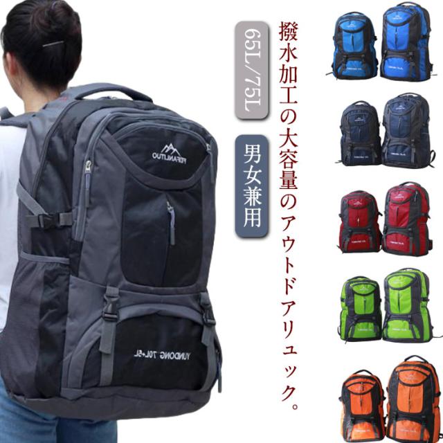 65L/75L バックパック 男女兼用 リュックサック 縦型 アウトドアリュック 防災リュック 大容量 アウトドアバッグ 部活 出張 旅行 山登り リュック キャンプ 防災用 かばん ユニセックス 撥水加工