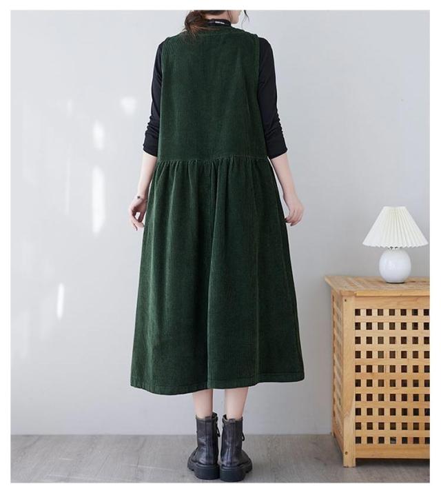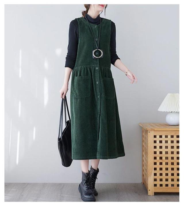 コーデュロイ ジャンパースカート Vネック ノースリーブ ロングワンピース ワンピース ジャンパースカート オールインワン オーバーオール 春 秋 きれいめ 大人 レイヤード おしゃれ M L XL 2XL