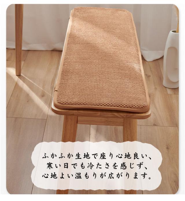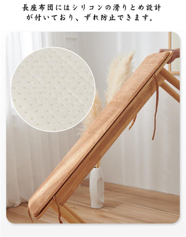 | オールシーズン使えられるロングベンチクッション。 長座布団にはシリコンの滑りとめ設計が付いており、ずれ防止できます。 ひも式で着脱も簡単。 厚みのデザインで座る時に、体圧を分散して身体を柔らかく支えることができ、長時間の座り作業でもお尻は疲れません。 ふかふか生地で座り心地良い、寒い日でも冷たさを感じず、心地よい温もりが広がります。 豊富なカラーバリエーション展開で部屋の模様替えやインテリア飾りとしてぴったり。 | |