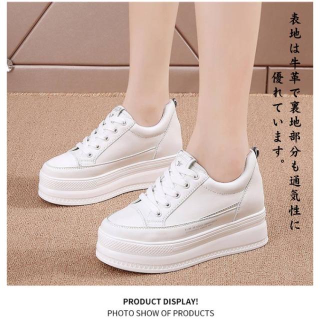 レディース シューズ レースアップ スニーカー 7cm身長アップ インヒール 厚底シューズ 疲れない 厚底靴 編み上げ 厚底 シークレットシューズ 7cm身長アップ 歩きやすい 白 美脚