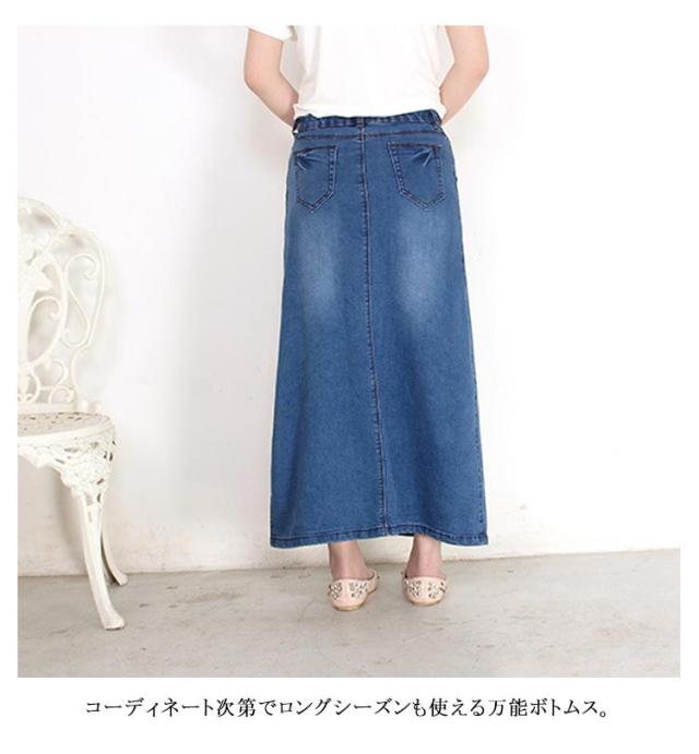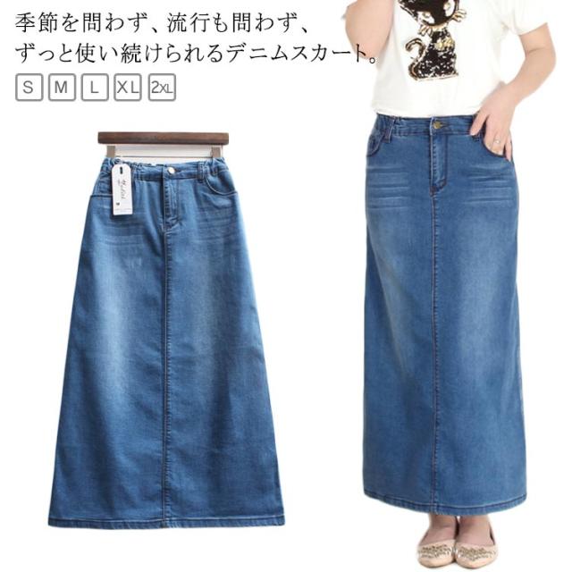 デニムスカート 膝下 デニム ミモレ丈 マキシ丈 ロングデニムスカート デニムスカート ロング スカート ロングスカート ゆったり 大きいサイズ ヴィンテージ加工 美脚 春夏