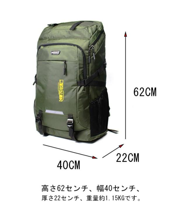 | ダウンジャケット8枚、布団1枚が収納できる80Lの大容量。 高さ62センチ、幅40センチ、厚さ22センチ、重量約1.15kgです。 ポケットがたくさんあり、衣類・靴及び他のお出かけ用品を収納でき、登山や旅行に最適。 背中部分はメッシュ素材を使用しており、滑りにくく背負う過程で肩に発生する空滑り現象を防止します。 S型ワイドショルダー+ストレスパッド+胸(腰)固定ベルトで背負いやすくなります。 アウトドアや登山、旅行用だけでなく、通勤通学などにも使える大容量リュックです! 完全防水ではなく、大雨にはレインカバーが必要です。 | |