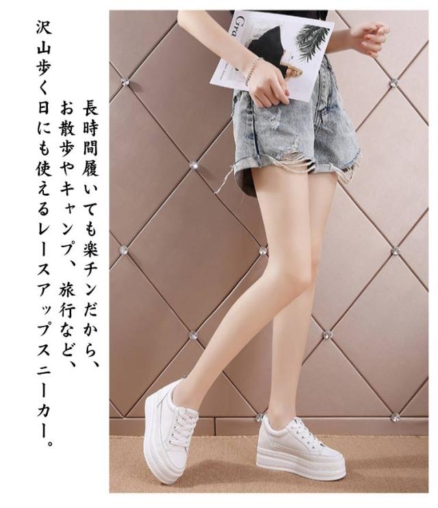 厚底 7cm身長アップ スニーカー シューズ 厚底靴 シークレットシューズ 7cm身長アップ レディース インヒール 編み上げ レースアップ 厚底シューズ 疲れない 歩きやすい 白 美脚