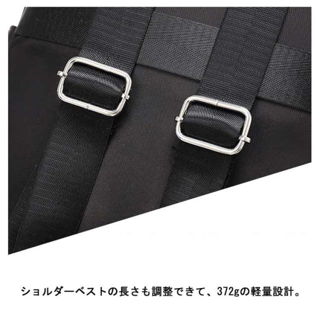 | リュック、斜め掛け、肩かけ、手提げスタイルにもなる4WAYバッグです。 頑丈な縫い糸を使用し、切れにくい。 縫製もしっかりしていて耐久性に優れます。 撥水加工のオックスフォード製で少々の雨でも安心して使えます。 ipad、雑誌、折り畳み傘、携帯電話、充電器などをすっぽり収納できます。 ショルダーベストの長さも調整できて、372gの軽量設計。 ポケット多数でコンパクトながら充実した収納力。 旅行から普段使いまで様々なシーンでの活躍が期待できる多機能バッグです。 | |