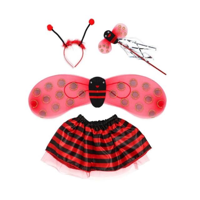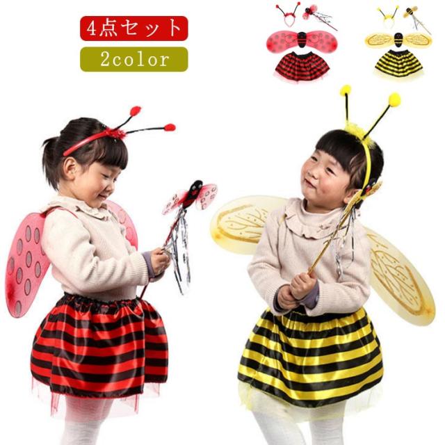 チュチュ てんとう虫 蜂 子供用 キッズ ミツバチ 翼 【4点セット】コスプレ コスプレ衣装 ハチ テントウムシ ハロウィン仮装 ふんわりスカート スカート 仮装 コスチューム 【4点セット】コスプレ 子供 子ども用 女の子 男の子 パーティーグッズ