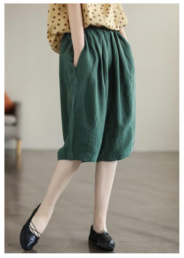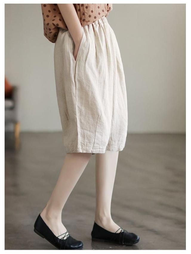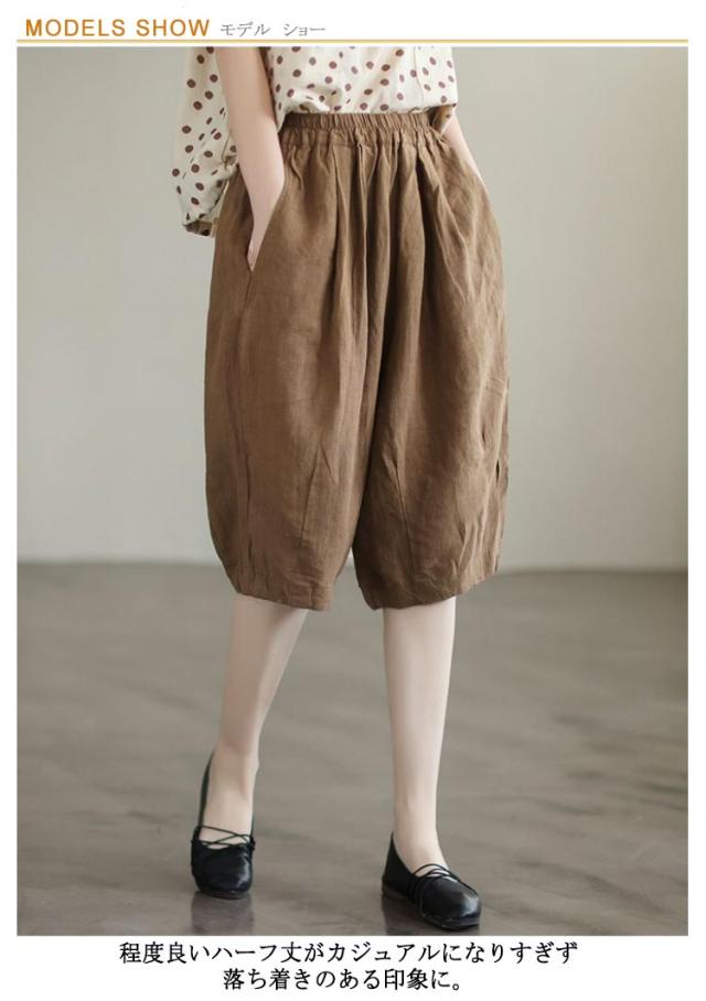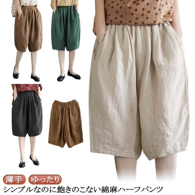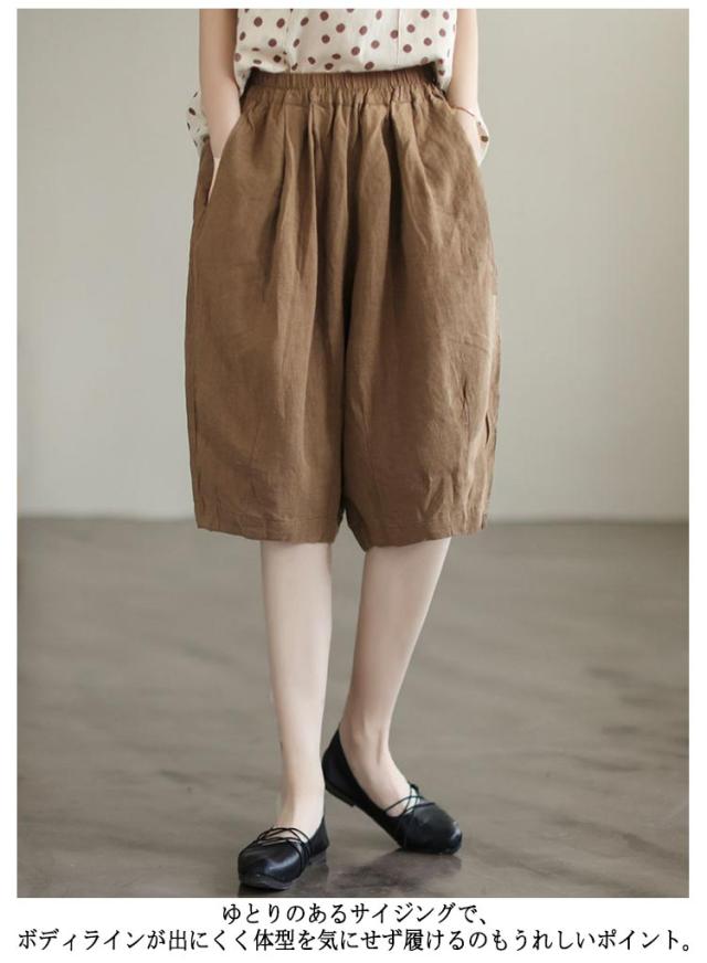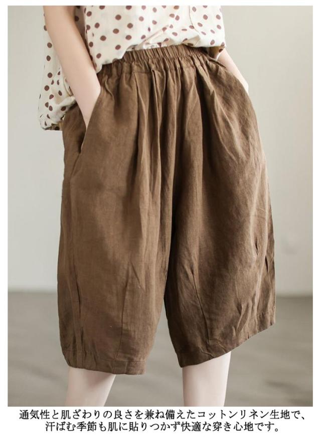 夏 レディース ショートパンツ 綿麻 ナチュラル 薄手 体型カバー 部屋着 大人 ウエストゴム おしゃれ パンツ 短パン 薄手 カジュアル ボトムス ひざ丈 無地 シンプル おしゃれ 女性 通勤 ポケット付き ゆったり
