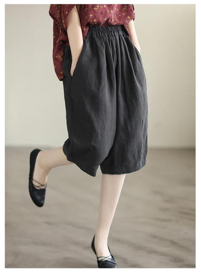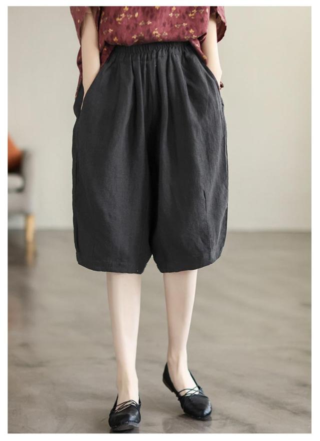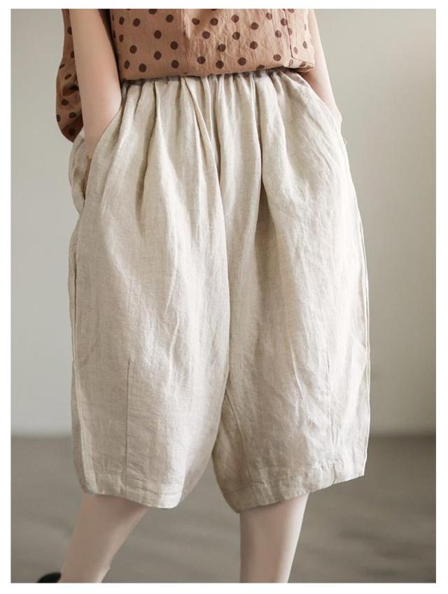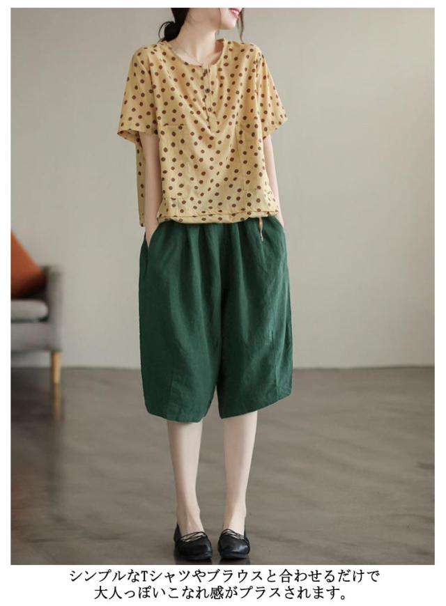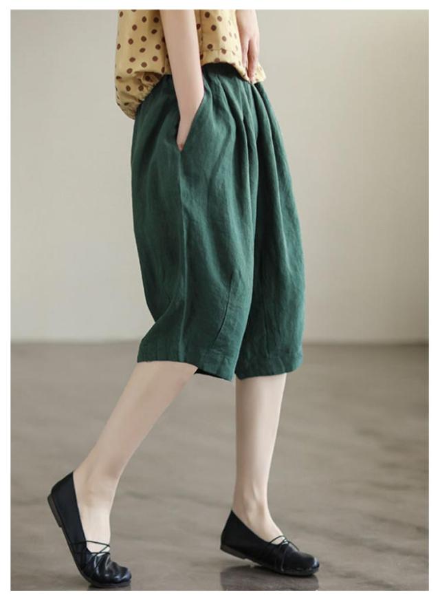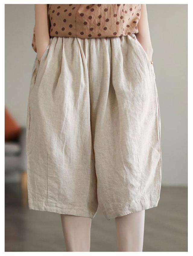 夏 レディース ショートパンツ 綿麻 ナチュラル 薄手 体型カバー 部屋着 大人 ウエストゴム おしゃれ パンツ 短パン 薄手 カジュアル ボトムス ひざ丈 無地 シンプル おしゃれ 女性 通勤 ポケット付き ゆったり