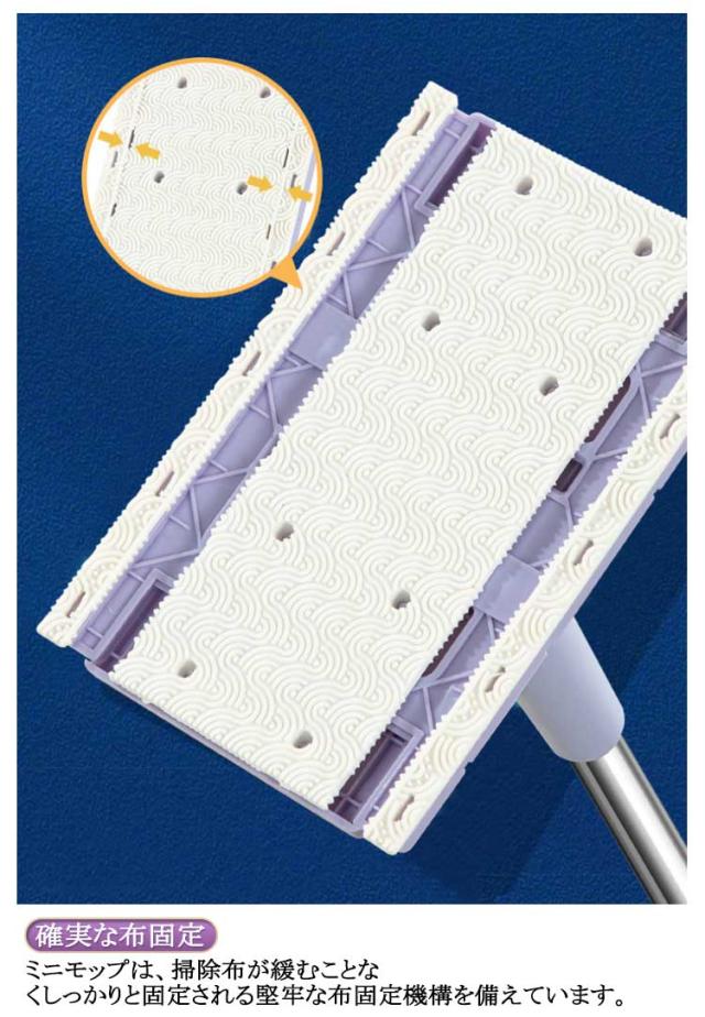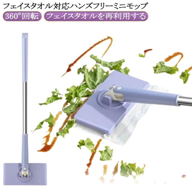 ミニモップ 無手洗いモップ ミニ フェイスタオル対応 ミニ フロアモップ 多機能 360°回転 多角度転換 乾湿両用 操作簡単 フェイスタオルモップ 床拭きシート 水拭きモップ 腰曲げず 油汚れを手で洗う必要なし
