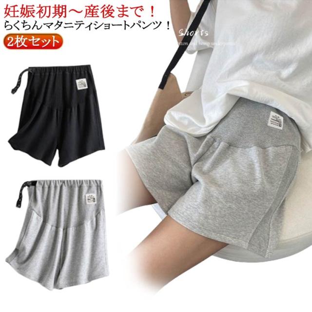 マタニティパンツ 春 パンツ 2枚入り マタニティ 薄手 レディース マタニティウェア ショートパンツ 2枚入り ショーパン ハーフパンツ 夏 ルームウェア パジャマ 部屋着 アジャスター 短パン 無地 妊娠 妊婦 産前 産後 ゆったり 3分丈 ズボン カジュアル