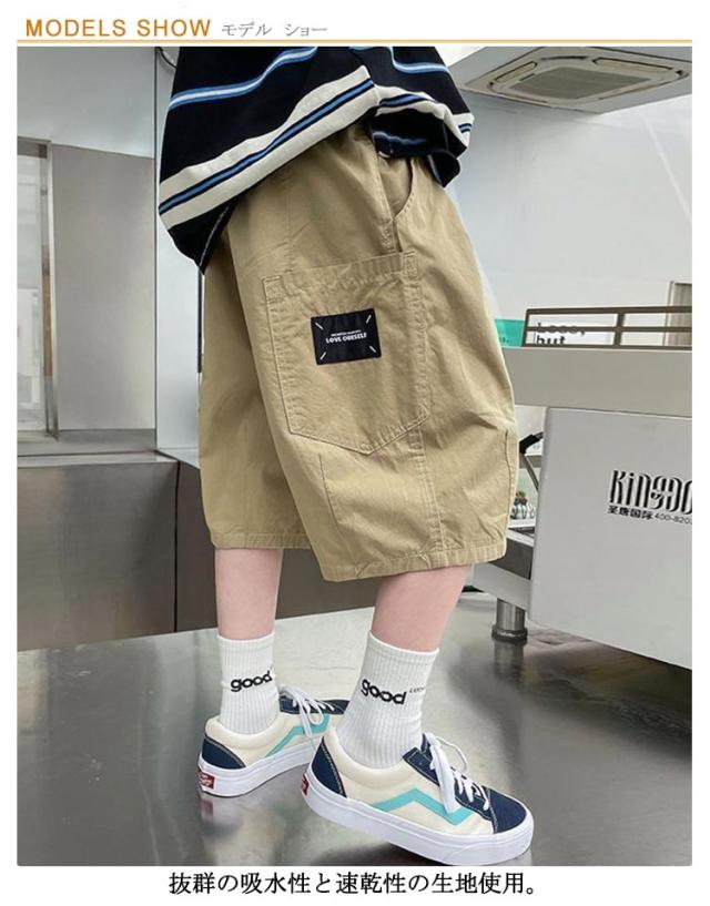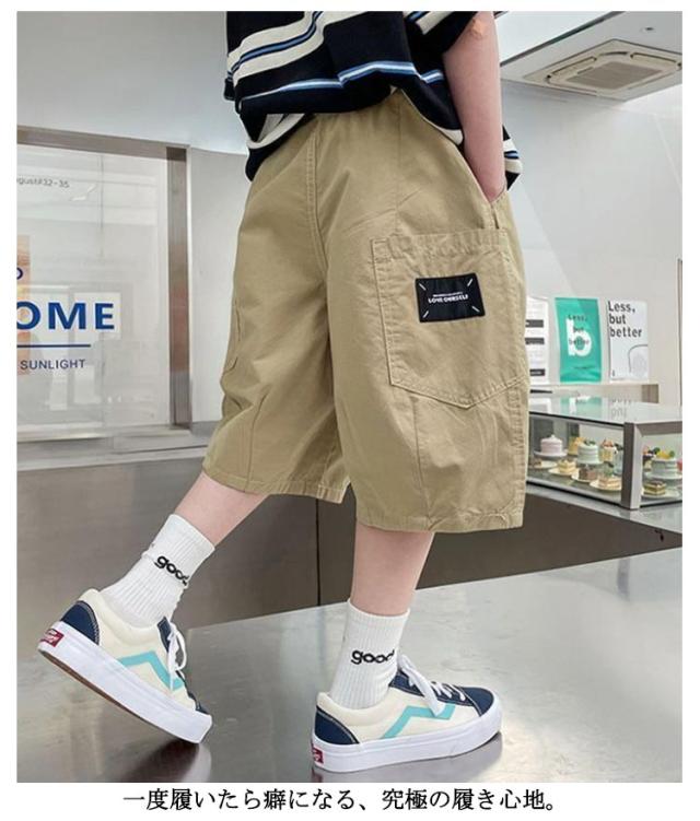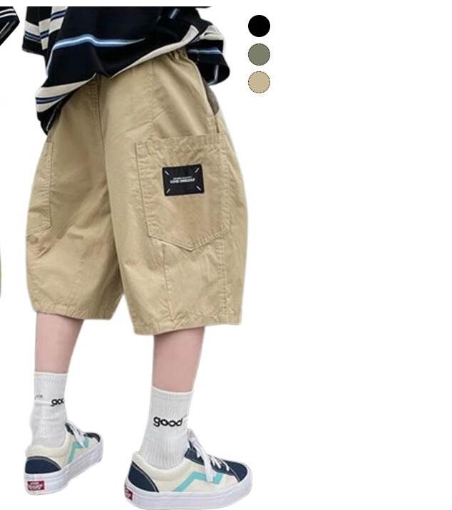 ワイドカーゴハーフパンツ ズボン ストレッチ 夏 カーゴパンツ 半パン ワイドパンツ 半ズボン スウェットパンツ スエットパンツ ジャージ 男の子 子供服 キッズ ワイドカーゴハーフパンツ 子供服 短パン ベビー服 無地 部屋着 ルームウェア ジュニア ダンス衣装