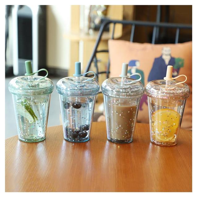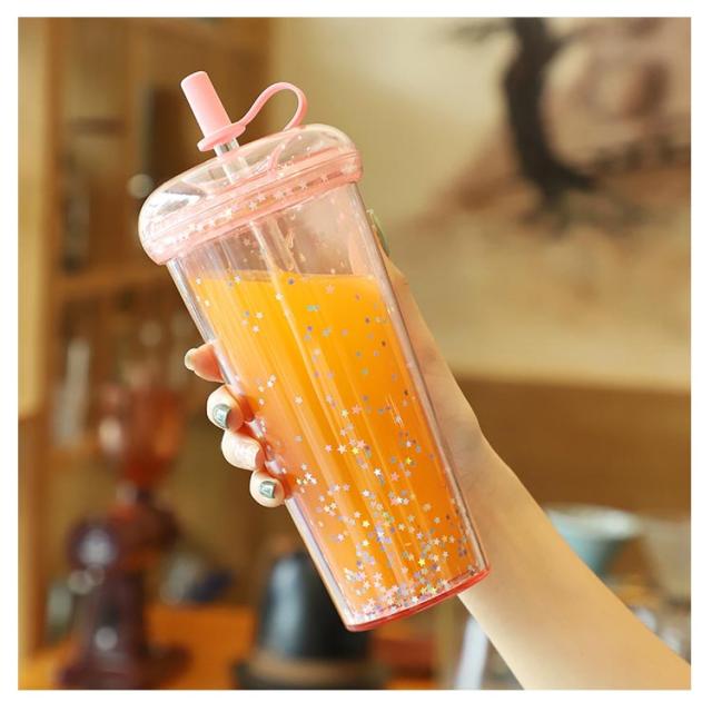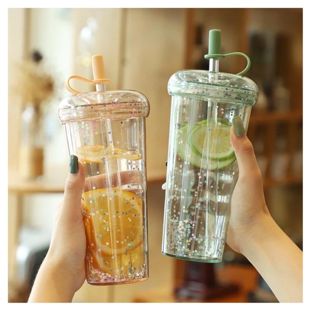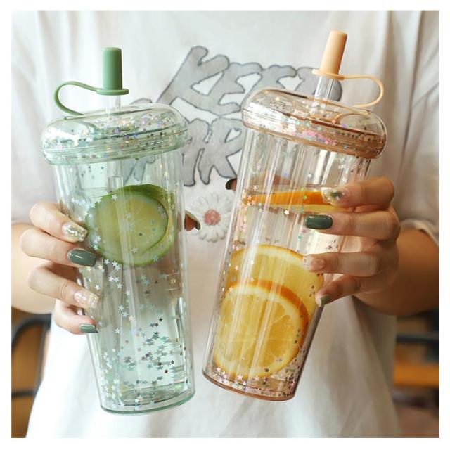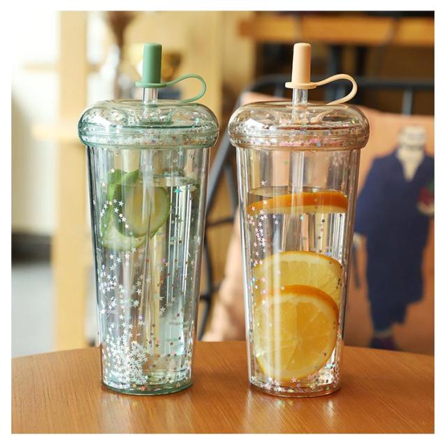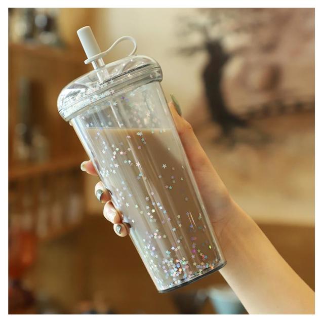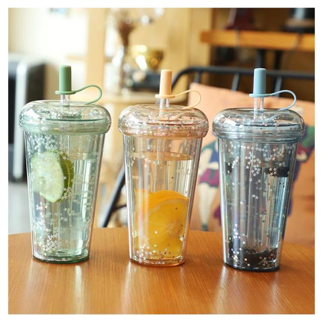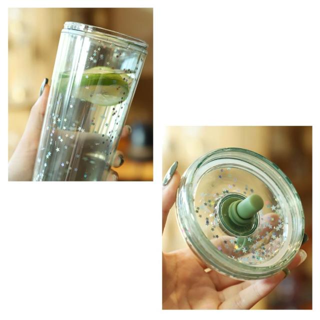 ストロー付きタンブラー 蓋付き 透明 タンブラー ドリンク ボトル 大人 ウォーターボトル 軽量 星柄 マグボトル ストローカバー付き 子供 大容量 おしゃれ 漏れ防止 ストロー付きタンブラー 320/420/520ml コーヒー ジュース 直飲み スポーツ お出かけ かわいい 洗いやすい
