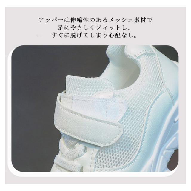 | 結ばない・ほどけない靴紐!キッズ向けダッドシューズです。 ボリューム感を増した厚底設計で、スタイルアップ効果が期待できます。 アッパーは伸縮性のあるメッシュ素材で足にやさしくフィットし、すぐに脱げてしまう心配なし。 シューズの先部分の広い空間は足の指の動きをスムーズにできるようにし、成長発育と認知発達によい。 柔らかくて伸展性が良い、適当な通気性能を持ち、全体が軽くて滑りにくい、スニーカーとしは最適です。 | |
