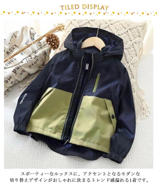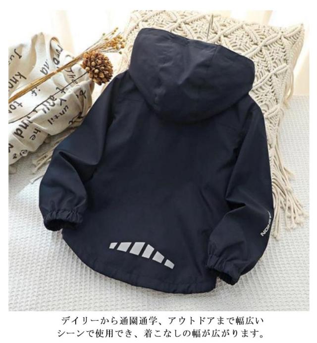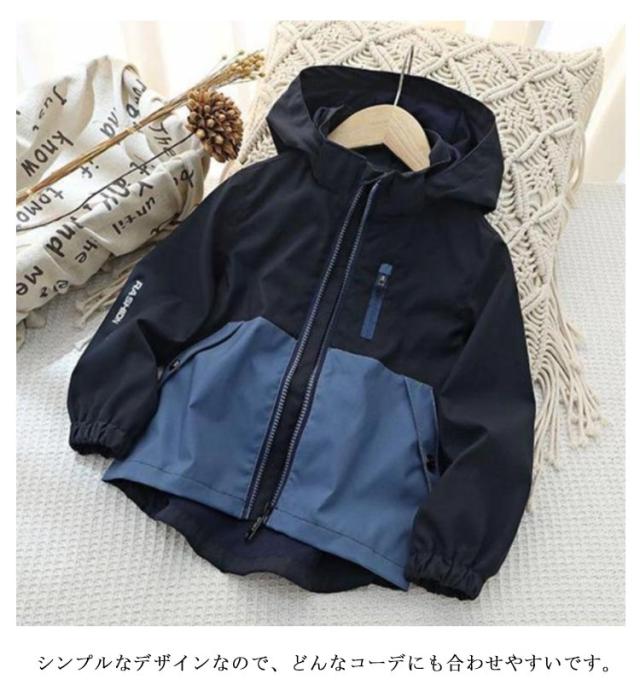 春秋 ジャケット 子どもパーカー ウインドブレーカー 防風 キッズ マウンテンパーカー 配色 撥水 アウター 長袖 ブルゾン 小学生 薄手 防寒 羽織り 男の子 ジャケット 軽量 登校 ジップアップパーカー フード付き
