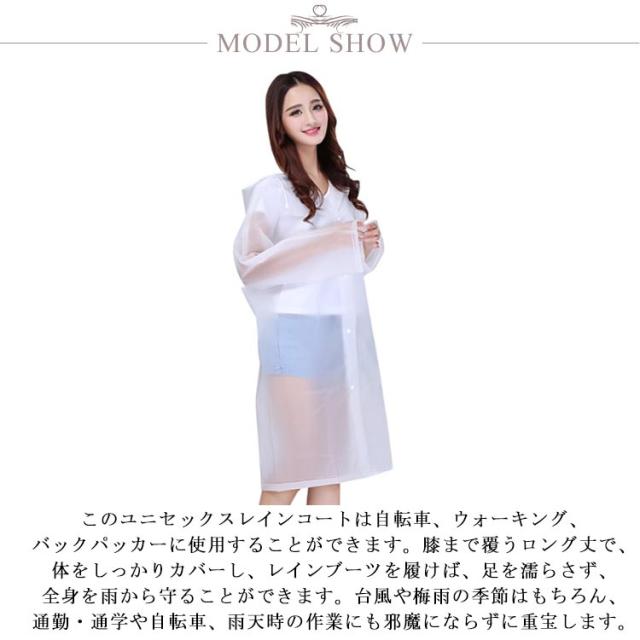 | このユニセックスレインコートは自転車、ウォーキング、バックパッカーに使用することができます。膝まで覆うロング丈で、体をしっかりカバーし、レインブーツを履けば、足を濡らさず、全身を雨から守ることができます。台風や梅雨の季節はもちろん、通勤・通学や自転車、雨天時の作業にも邪魔にならずに重宝します。 通勤、通学、自転車、バイク、原付などの日常使用はもちろん、キャンプ、釣り、登山、ハイキング、ウォーターレジャー、雨の日のイベント、野外フェス、スポーツ観戦などのアウトドアでも使用可能です。 | |