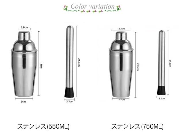| サイズについての説明 | サイズ:ジガーカップx 1+カクテルシェイカー×1+バースプーン×1+ぺストル×1 ※測定方法によって誤差が生じますので、予めご了承下さい。 |