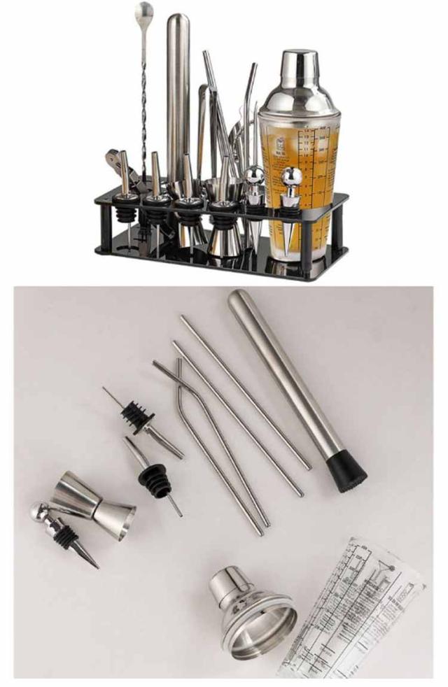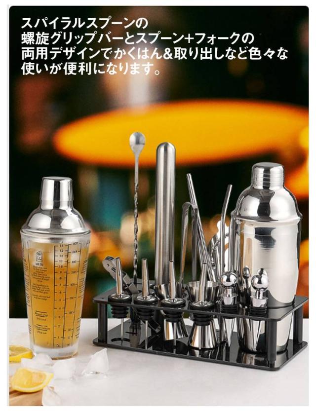 | プロのバーテンダーでも一般人でも、最もベースなバーテンダーツールセットです。 厳選されたステンレス素材で作り上げ、耐久性が優れ、錆びにくく、安全&丈夫で長く使用できます。 スパイラルスプーンの螺旋グリップバーとスプーン+フォークの両用デザインでかくはん&取り出しなど色々な使いが便利になります。 父の日の贈り物やお酒好きの方へのプレゼントなどにもおすすめです。 | |
