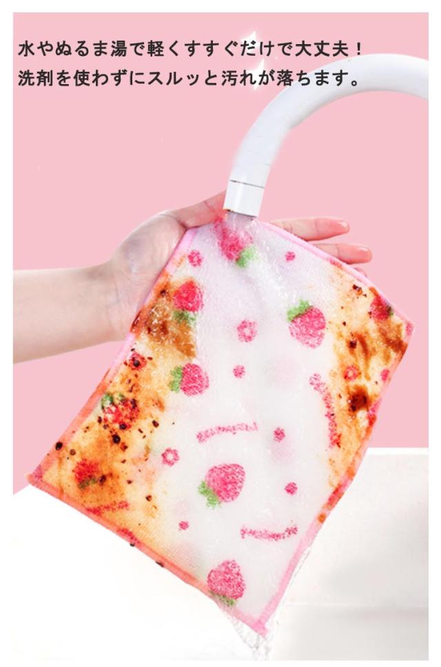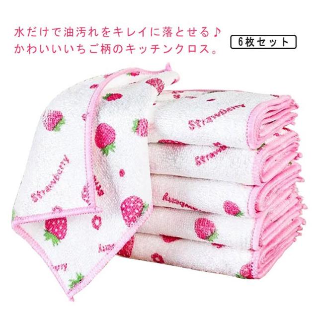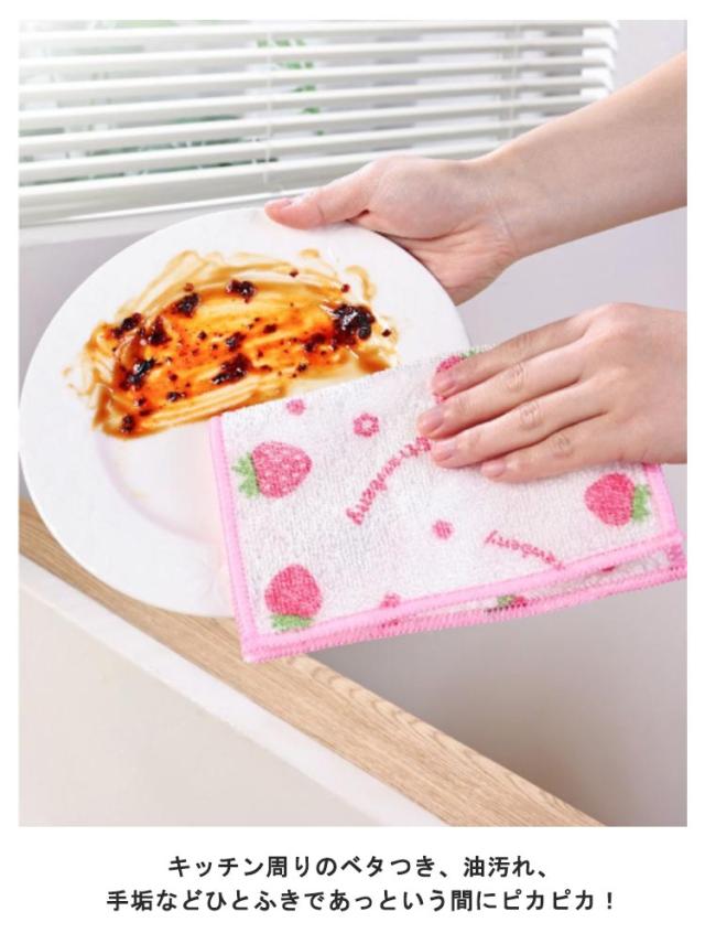 | 水だけで油汚れをキレイに落とせる♪かわいいいちご柄のキッチンクロス。 水やぬるま湯で軽くすすぐだけで大丈夫!洗剤を使わずにスルッと汚れが落ちます。 キッチン周りのベタつき、油汚れ、手垢などひとふきであっという間にピカピカ! 汚れやニオイが落ちにくいときは、台所用洗剤を使って手洗いし、陰干ししてください。 6枚セットで毎日のお手入れの強い味方です!分けて使用してください。 | |