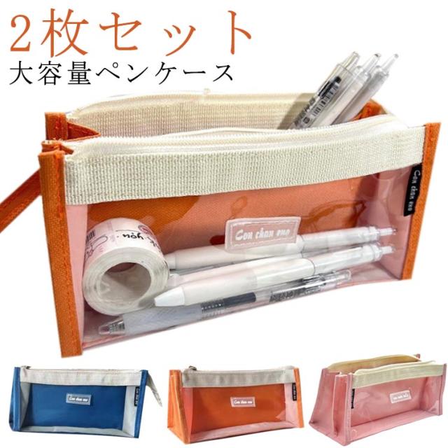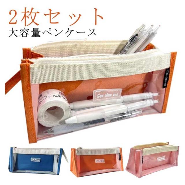 高校生 ふでばこ大容量 筆箱 ポーチ ツールペンケース 中学生 ペンケース おしゃれ シンプル 透明 多機能 大人 ペンケース 2枚セット 男の子 女の子 大学生 小学生