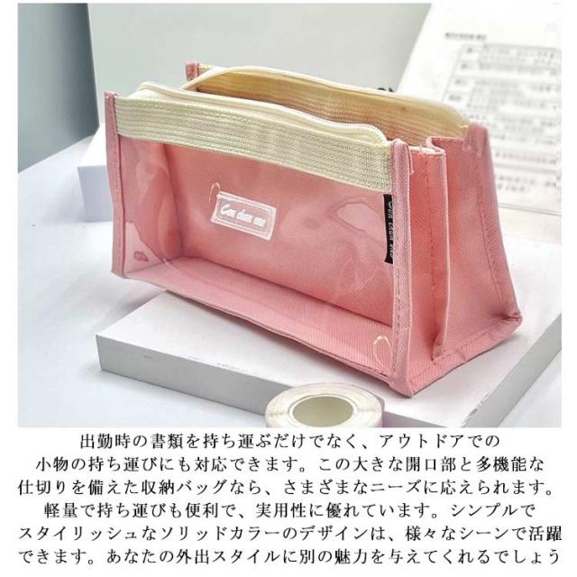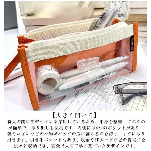| この透明デザインは、環境に優しい素材を使用しており、視覚的にクリアな印象を与えるだけでなく、子供たちが文房具を探す際にも無理なく簡単に鉛筆、消しゴム、定規などの必要なものを見つけられるようになっています。大人にとっても、透明の外装で一目で中が見渡せるので、あちこち探し回る必要がなく、貴重な時間を節約できます。シンプルでモダンなデザインは、現代的な家庭環境にもぴったりマッチし、実用性と美しさを兼ね備えています。家族みんなが便利さを体感できるでしょう。 【大きく開いて】 特大の開口部デザインを採用しているため、中身を整理しておくのが簡単で、取り出しも便利です。内側には4つのポケットがあり、鍵やコインなどの小物がバッグの底に落ちるのを防げ、すぐに取り出せます。引き手ポケットもあり、現金やIDカードなどの貴重品を別々に収納でき、安全で人間工学に基づいたデザインです。出勤時の書類を持ち運ぶだけでなく、アウトドアでの小物の持ち運びにも対応できます。この大きな開口部と多機能な仕切りを備えた収納バッグなら、さまざまなニーズに応えられます。軽量で持ち運びも便利で、実用性に優れています。シンプルでスタイリッシュなソリッドカラーのデザインは、様々なシーンで活躍できます。あなたの外出スタイルに別の魅力を与えてくれるでしょう。 | |