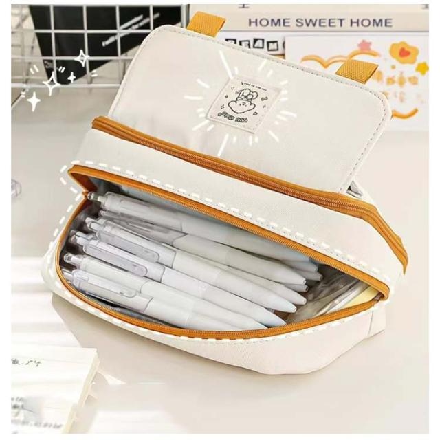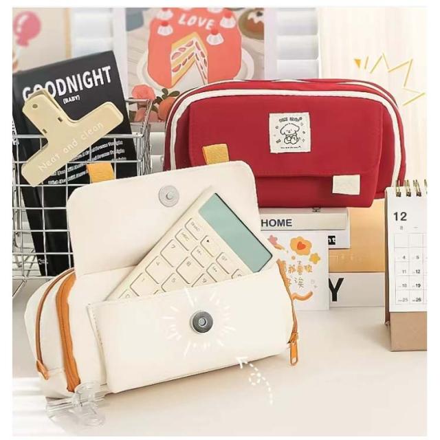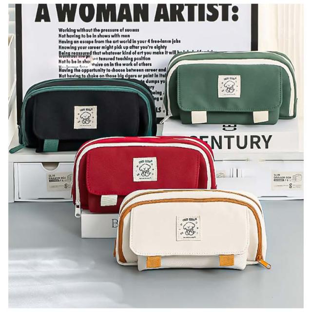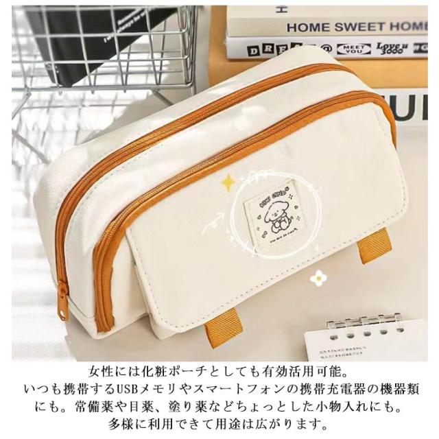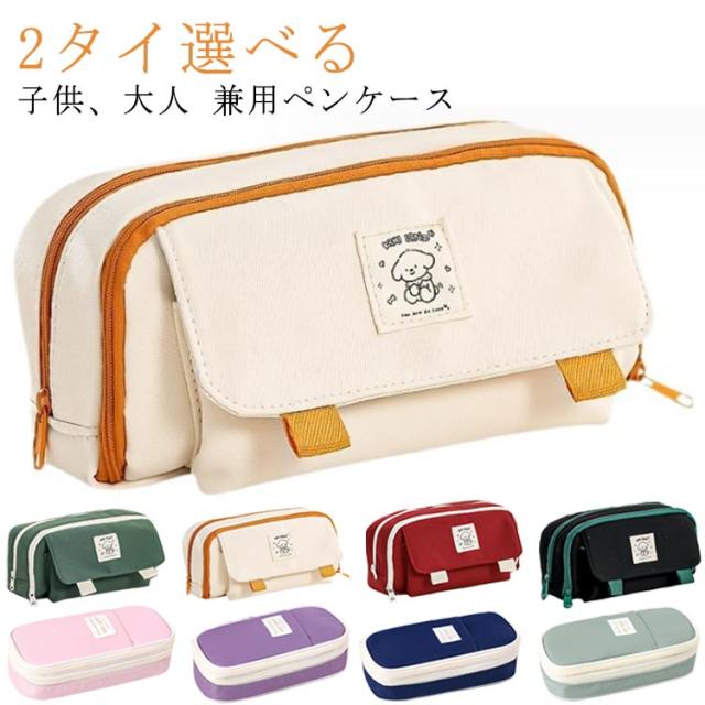 | 2タイ選べる 子供、大人 兼用ペンケース タイプ1はかわいい犬のデザイン、タイプ2はシンプルなデザイン ふせんや定規などを分けて収納できるポケットがついています。 筆記具などと分けて収容できるので、小物が探しやすく汚れにくいので安心です。 女性には化粧ポーチとしても有効活用可能。いつも携帯するUSBメモリやスマートフォンの携帯充電器の機器類にも。常備薬や目薬、塗り薬などちょっとした小物入れにも。多様に利用できて用途は広がります。 | |