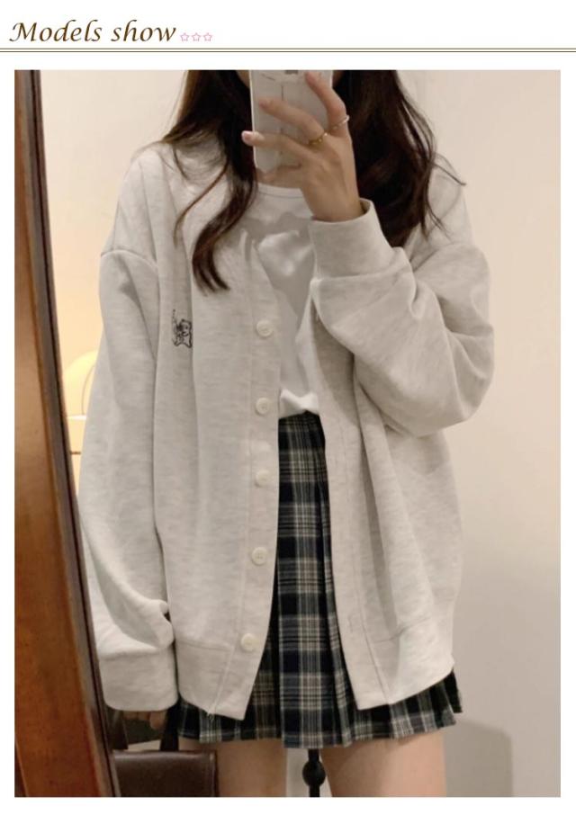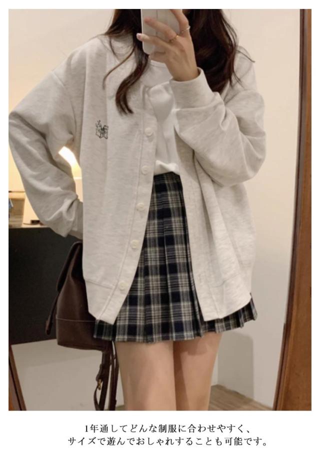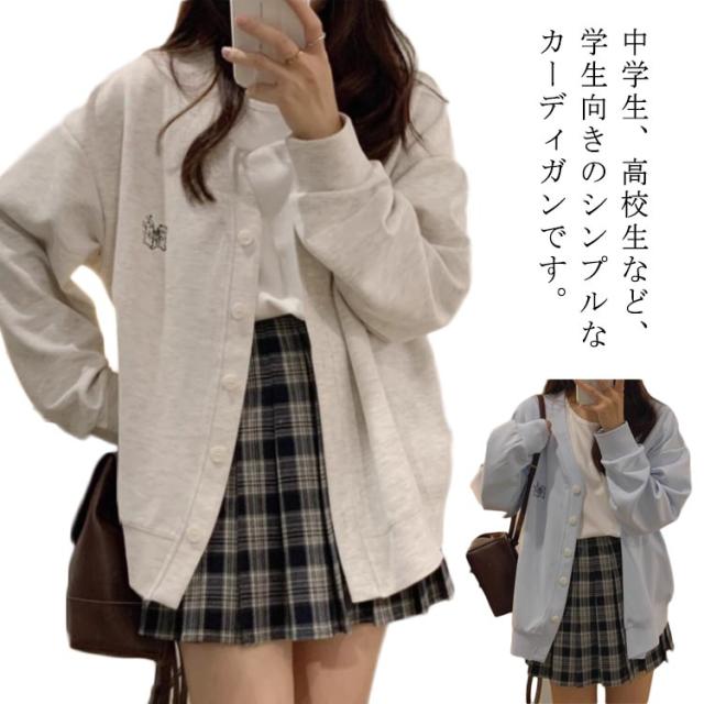 カーディガン レディース スクールカーディガン トップス カーデ スウェット 長袖 大きいサイズ トレーナー Vネック 学生 制服 女子 中学生 高校生 体型カバー ゆったり カーディガン アウター 春 夏 秋