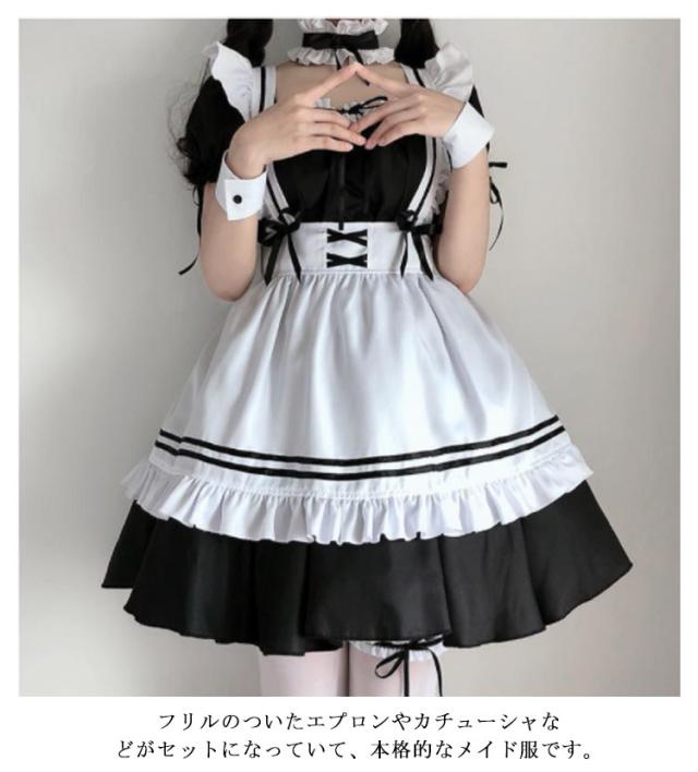 8点セット コスプレ メイド服 ハロウィン 女の子 レディース メンズ かわいい 可愛い メイド服 黒 ロリータ 半袖 大きいサイズ 定番 バレンタイン ピンク コスチューム 頭飾り クラシック ゴスロリ メイド