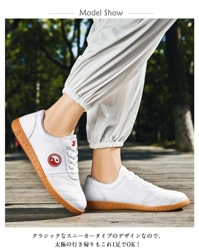 | 太極拳 シューズ 靴 男女兼用!22.5-27cm! クッション性と耐久性を両立したラバーソールを採用された! 長時間歩いていても疲れにくいデザインとなってます。 通気性抜群、軽量、ソフトで柔軟な底、滑べ止め、長時間の使用でも疲れにくく、防菌消臭でき、運動用の選ぶ一番な理由です。 クラシックなスニーカータイプのデザインなので、太極の行き帰りもこれ1足でOK! | |