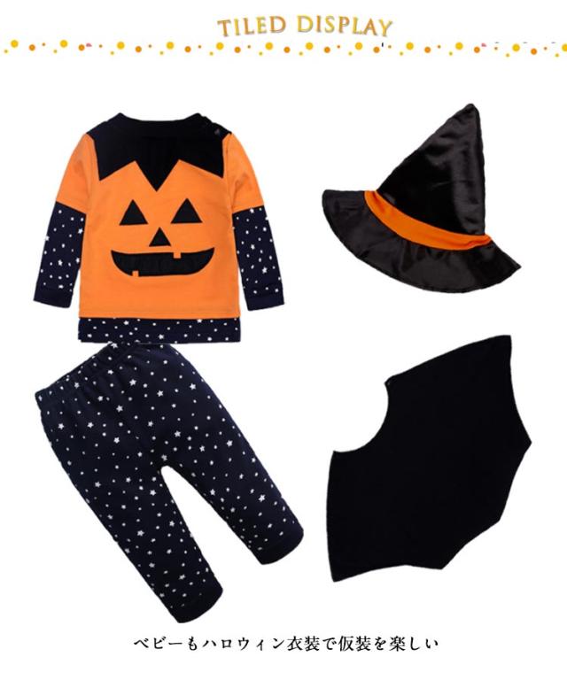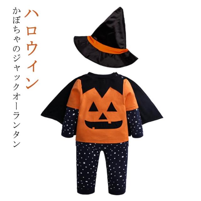 | ハロウィン かぼちゃのジャックオーランタン 長袖カバーオール、カバー、帽子の豪華3点セット ベビーもハロウィン衣装で仮装を楽しい | |