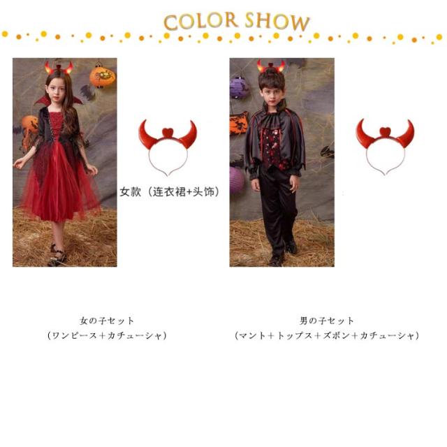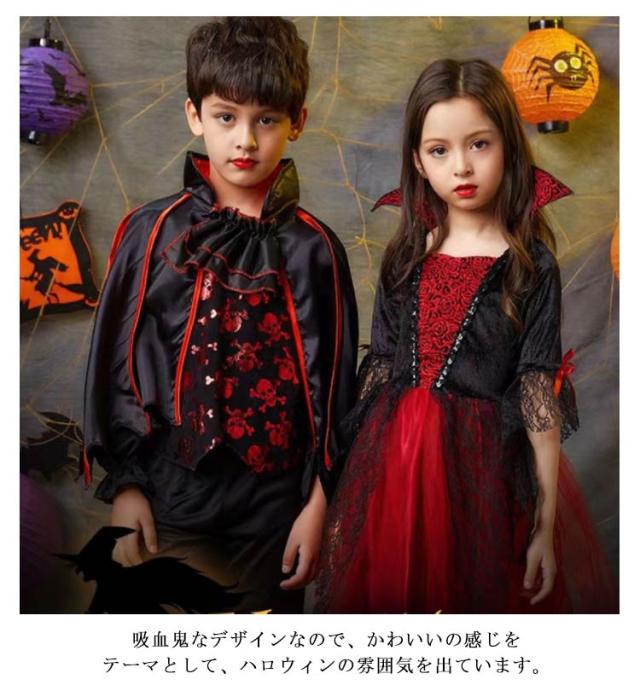 | 【オシャレの吸血鬼さん】コスプレ衣装として評価の高い人気の定番吸血鬼コスチューム。ちょっぴりゴスロリテイストが加わった、レースが沢山付いた可愛いデザインが特徴です♪ 【デザイン】子供のプレゼントにも是非ご利用ください〜身頃はシンプルな柄で、おしゃれなデザインでお子様の可愛さを存分に引き出しますします。 【優しい肌触り】高品質な素材を使用して、手で触ると質感やクオリティなどが良いです。おしゃれなコスプレ用セットです。吸血鬼なデザインなので、かわいいの感じをテーマとして、ハロウィンの雰囲気を出ています。 【使用場合】ハロウィンやお誕生日、お遊戯の衣装に、ハロウィンプレゼントにもオススメ! | |