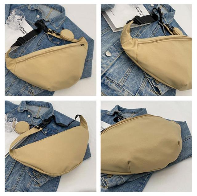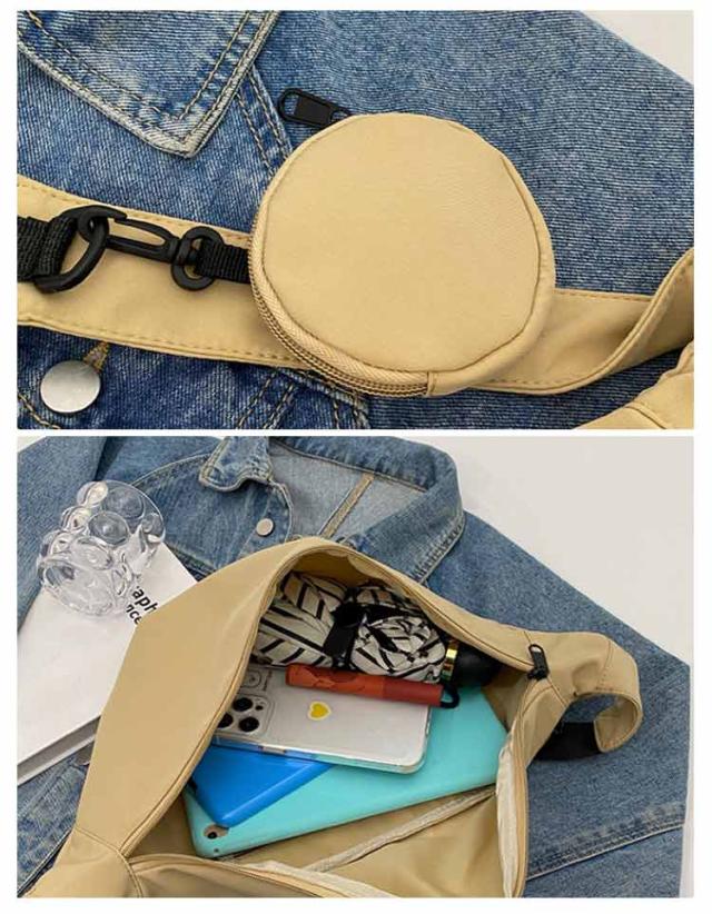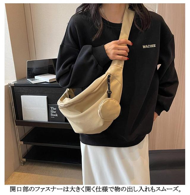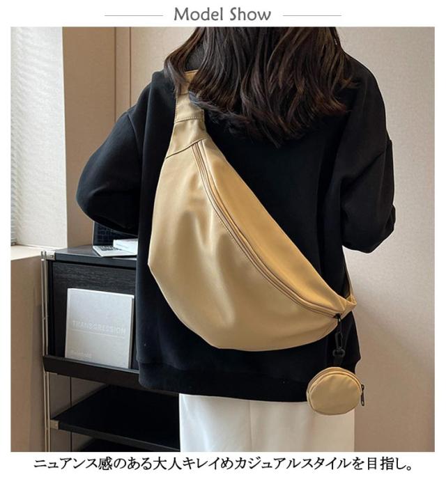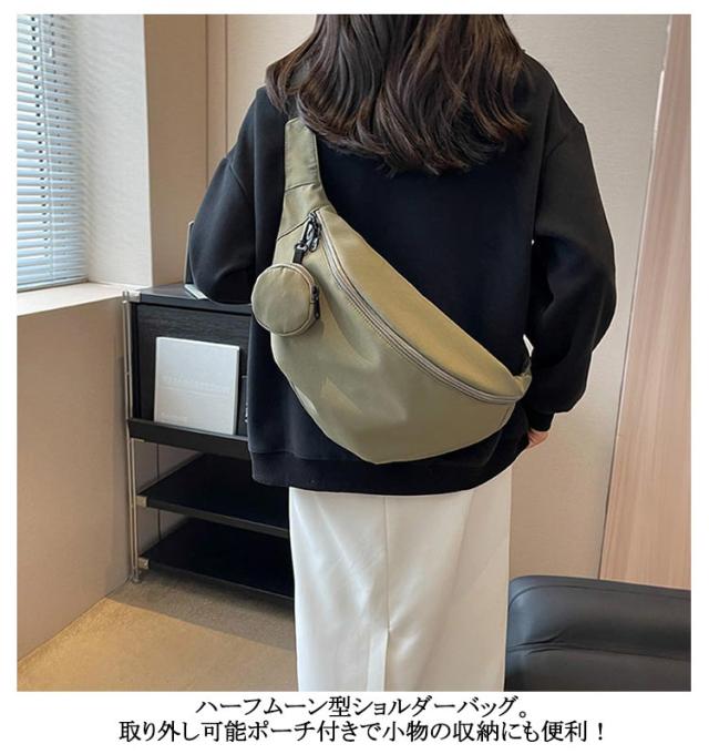 | ハーフムーン型ショルダーバッグ。スタイリッシュなハーフムーンフォルム。 ニュアンス感のある大人キレイめカジュアルスタイルを目指し。 ナイロン素材で軽量に仕上げました。 開口部のファスナーは大きく開く仕様で物の出し入れもスムーズ。 ハーフムーン型ショルダーバッグ。取り外し可能ポーチ付きで小物の収納にも便利! シンプルなデザイン、上品な落ち着いたカラーで幅広い世代の方にお使いいただけ、プレゼントにも最適です☆ | |