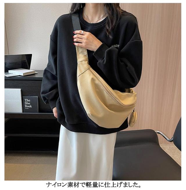 大人 ナイロン ボディバッグ ギャザーバッグ 軽い 斜めがけバッグ レディース バッグ 旅行バッグ きれいめ ウエストバッグ 通勤 通学 大容量 ワンショルダー 斜め掛け ウエストポーチ ラウンドショルダーバッグ 撥水 アウトドア